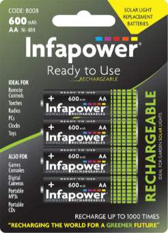 Login to View PricesInfapower AA 600mAh batteries have been specifically developed for solar garden lights.